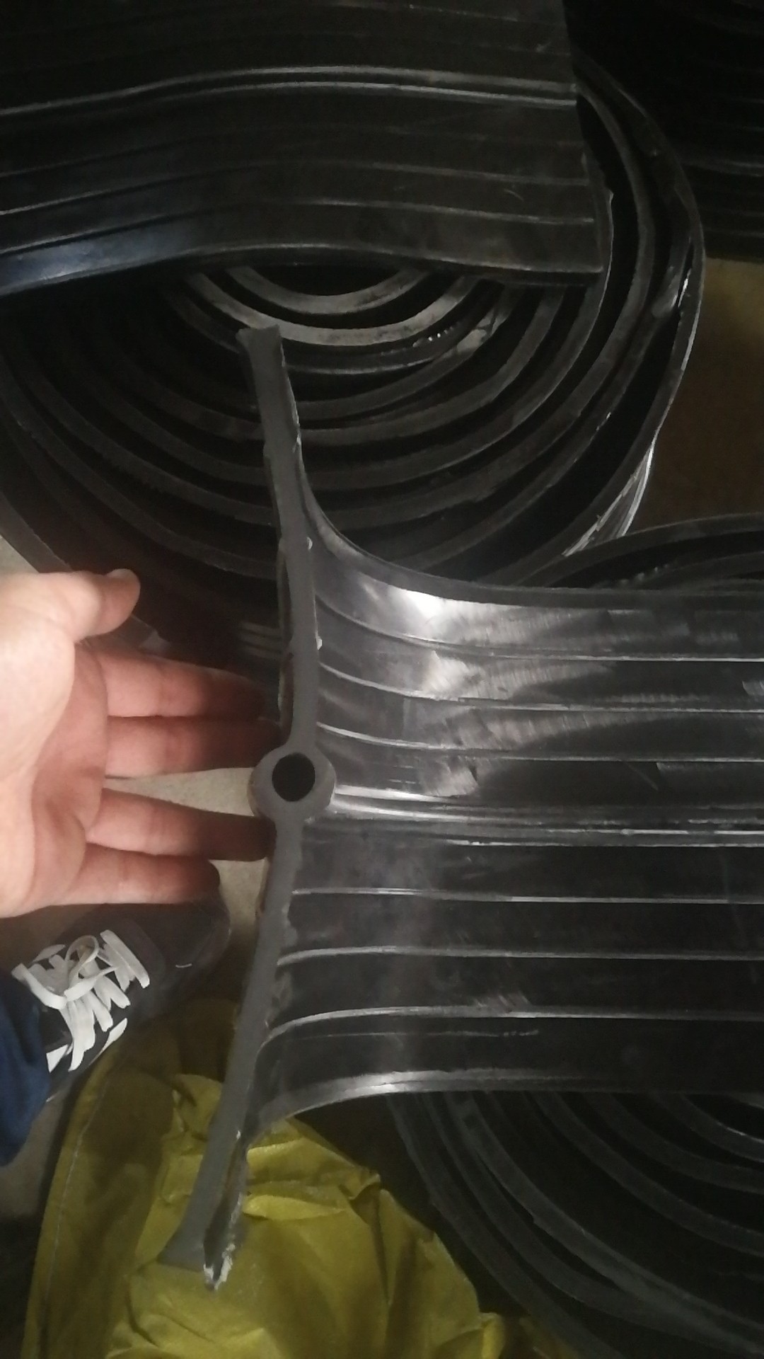 橡膠止水帶是利用橡膠的高彈性和壓縮變形性的特點(diǎn),在各種載荷下產(chǎn)生彈性變形,從而起到有效緊固密封,防止建筑構(gòu)造的漏水、滲水及減震緩沖作用。在一般較大工程的建筑設(shè)計(jì)中,由于不能連續(xù)澆注,或由于地基的變形,或由于溫度的變化引起的混凝土構(gòu)件熱脹冷縮等原因,需留有施工縫、沉降縫、變形縫,在這些縫處必須安裝止水帶來防止水的滲漏問題。止水帶主要用于混凝土現(xiàn)澆時(shí)設(shè)在施工縫及變形縫內(nèi)與混凝土結(jié)構(gòu)成為一體的基礎(chǔ)工程,如地下設(shè)施、隧道涵洞、輸水渡槽、攔水壩、貯液構(gòu)筑物產(chǎn)品